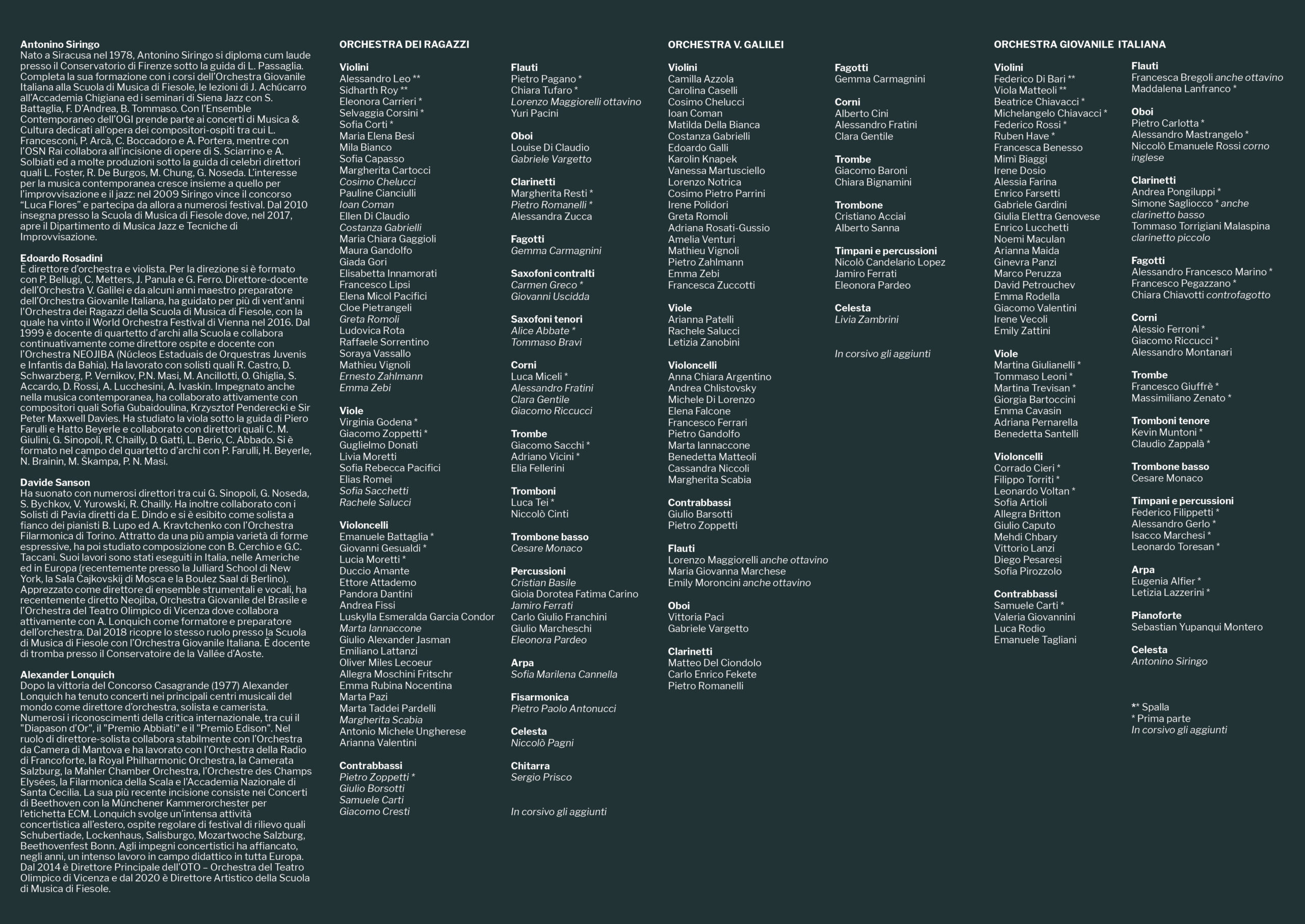 Programma di Capodanno – interno (biografie e organici)